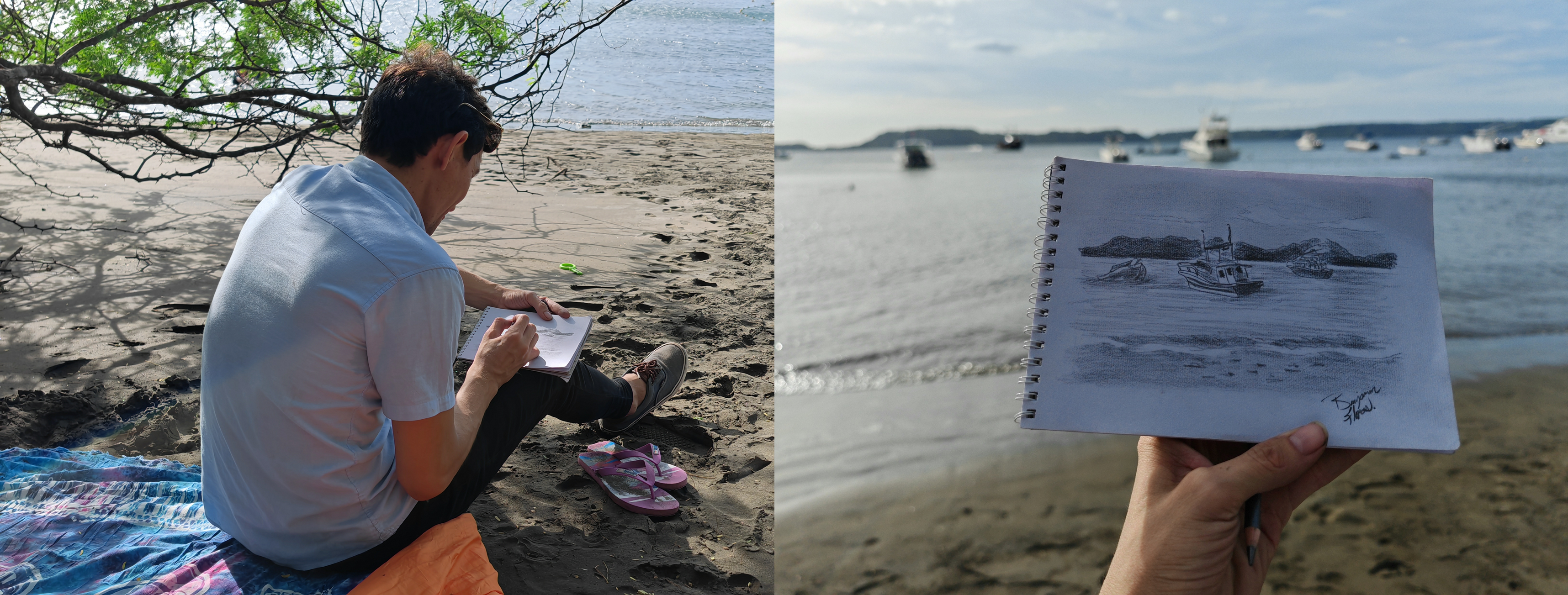 Benjamin habla de algunas de sus técnicas pictóricas, con las presentadoras Alondra Orozco y Angie Cano. Periodistas y presentadoras del programa “Es Mi Dia”.